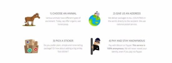 Shitexpress versendet weltweit kostenlos Scheisse und dies auf Wunsch mit persönlicher Widmung und lustigem Sticker. Ausserdem sollen zukünftig noch andere Tiere ausser Pferde zur Auswahl stehen. Für gerade mal 16.95$ kann man diese Service per Paypal in Anspruch nehmen…