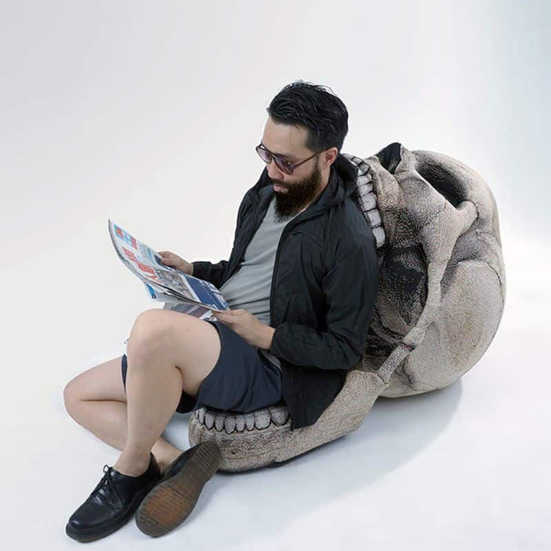 Dieser Skull Chair von Etsy-Verkäufer ChicsinDesign ist genau das Richtige, um deinen bösen Overlord-Unterschlupf etwas Besonderes zu verleihen! Es hat eine bewegliche Kiefer, der geöffnet oder geschlossen werden kann, so dass es sowohl als Stuhl als auch als Dekoration verwendet werden kann. Die Außenseite des Stuhls besteht ausschliesslich aus gestrickten, farbigen Garnen und kostet knapp € 420. ChicsinDesign hat noch weitere, andere erstaunliche Stühle, Sitzsäcke und Kissen, die nach dem gleichen Prinzip gefertigt wurden…