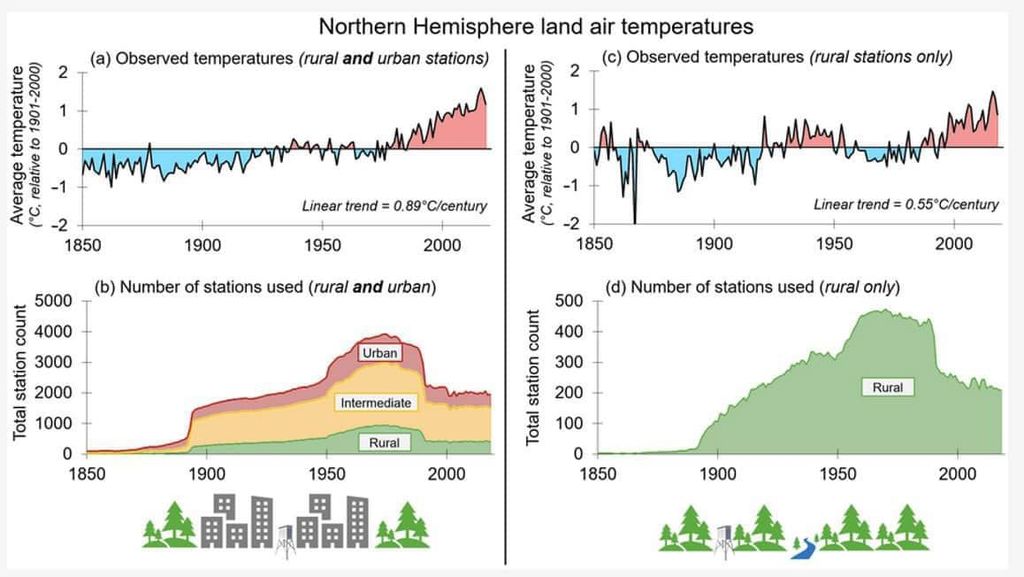 a) der Hitzeeffekt von Städten zu einer signifikanten Verzerrung der festgestellten Erwärmung führt,