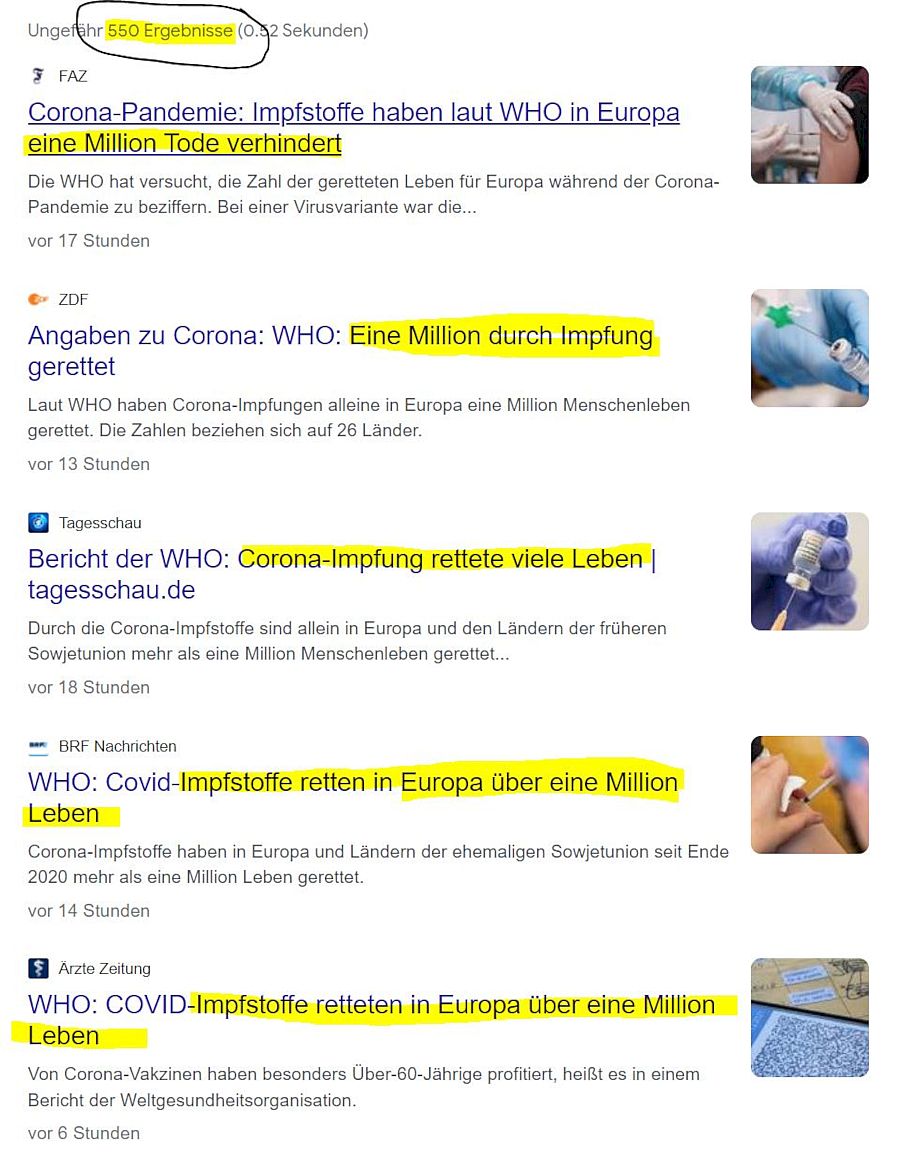 Eine Agenturmeldung wird abgeschrieben, 0 mal nachgeprüft millionenfach publiziert. Dies ist der Grund, warum alle Medienkonsumenten in Europa dieselben Informationen vorgesetzt kriegen und darum werden wir ab heute nun von Herrn Müller und Frau Meier zu hören bekommen, dass diese «Impfstoffe» 1 Million Leben gerettet haben sollen. Tatsächlich wurde wieder einmal extrapoliert und modelliert. Aus Sicht der seriösen Wissenschaft komplett unwissenschaftlich, dient aber dem Narrativ. Wird deshalb auch von den Mainstream Medien nicht hinterfragt. Ich aber frage die Medien: Wie erklärt ihr euch, dass diese Spritzen angeblich 1 Million Leben retten, trotzdem aber die Übersterblichkeit in vielen Ländern noch nie so hoch war wie in den letzten zwei Jahren? 🤔