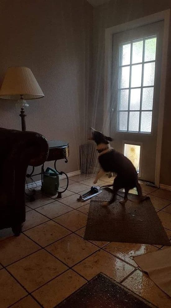 Du weisst es ist so richtig heiss draussen, wenn dein Hund den verdammten Gartensprinkler durch die Hundetür herein schleppt…