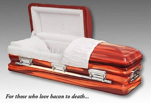 Is there a better way to show your love of bacon forever than to be buried wrapped in it? We don’t think so.