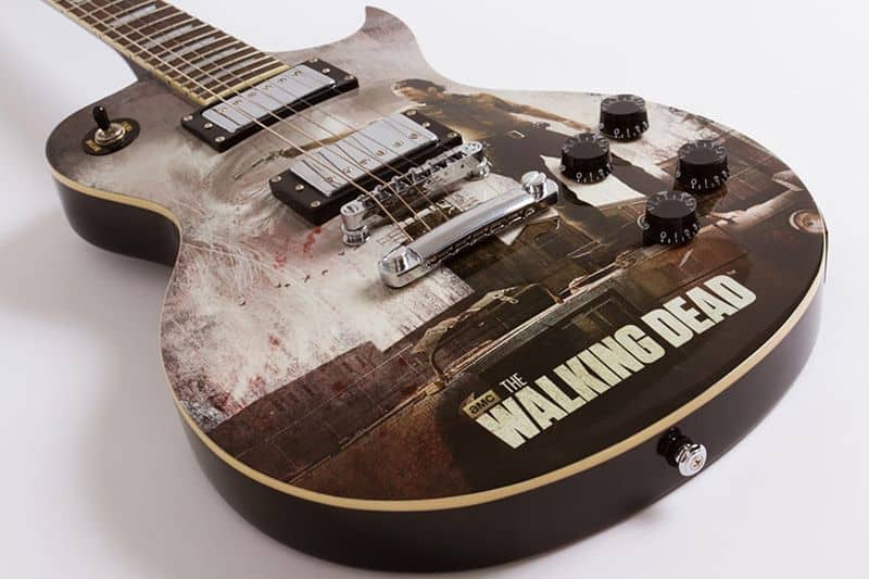 Passend zu kommenden Staffel Finale und den Verlusten in den Reihen von Rick & Co. kann man nun auf der Gitarre das Lied vom Tod spielen. Diese coolen Artist Series Guitars von ASG gibt es in einer speziellen Fan-Edition, mit Rick, Michonne, Daryl und jeder Menge Untoten. Man hat die Wahl zwischen verschiedenen Looks und Designs, die ordentlich auffallen. Preislich liegen die Gitarren zwischen $399 und $999…
