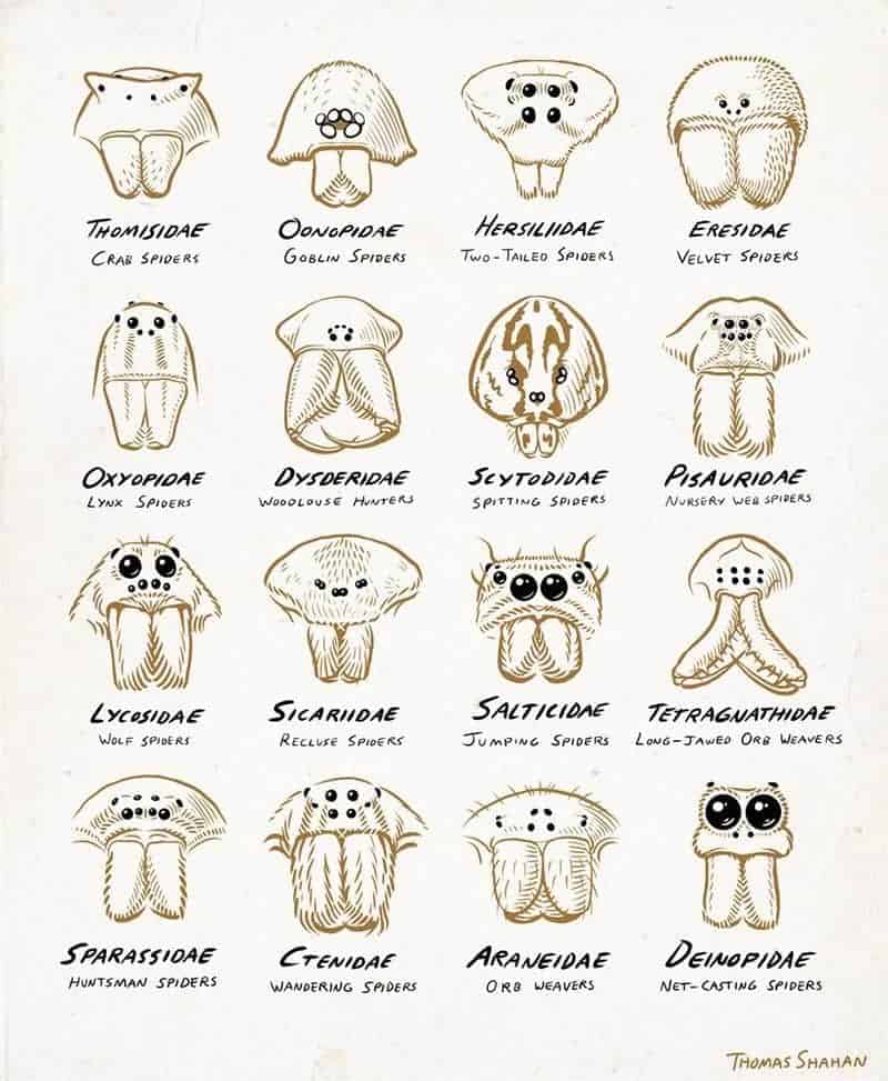 Thomas Shahan zeichnete Spinnenaugen-Arrangements für eines seiner Spinnentier-T-Shirts…