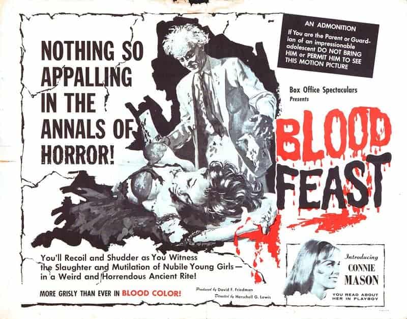 Bereits in dem Trailer zu «Blood Feast» wurde das Publikum gewarnt: Wer leicht aus der Fassung gerate oder Herzprobleme habe, möge jetzt den Saal verlassen; auch für Kinder und Schwangere sei, was jetzt zu sehen ist, nicht geeignet. Ein stümperhafter Affront gegen den Feingeist sei das, in jeder Hinsicht eine Amateurarbeit, von dem Drehbuch ganz zu schweigen. Das stimmt wahrscheinlich alles, aber es bereitete den Weg für eine vor Produktivität sprudelnde Grindhouse-Szene, ohne die es jemanden wie Quentin Tarantino heute nicht geben würde. In H.G.Lewis Film ging es zur Sache, nicht nur spritzte das rot leuchtende Kunstblut über die Leinwand, auch wurden wehr- und arglose Opfer – meist junge, hübsche, zumeist leicht bekleidete Frauen – von einem gewissen Fuad Ramses, dem Inhaber eines kleinen ägyptischen Catering-Services, mit einem langen Fleischermesser regelrecht ausgenommen. Alles war zu sehen und die Verletzung und Zerstückelung des menschlichen Leibes nicht länger ein Tabu im Film.