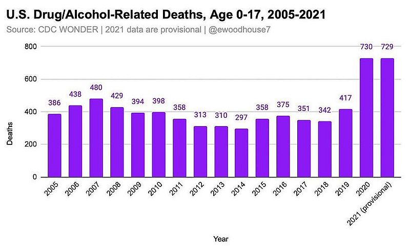 In den Jahren 2020 und 2021 gab es einen sprunghaften Anstieg toter Kinder und Jugendliche durch Drogen/Alkohol in den USA. Dies kann man mal zur Abwechslung nicht dem Virus in die Schuhe schieben – sondern da sind klar die Corona-Massnahmen mitverantwortlich und dies nicht «nur» bei Kindern und Jugendlichen, wie man auch dem Bericht bei Infosperber entnehmen kann…