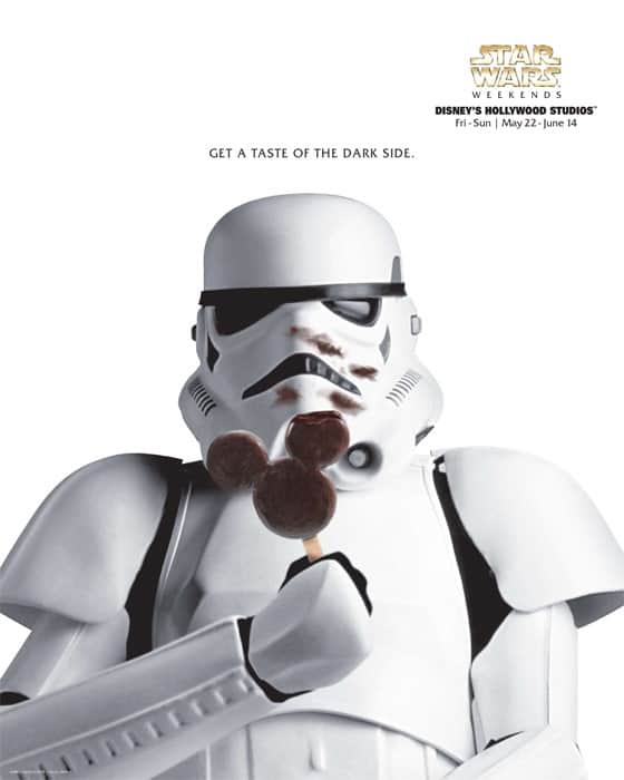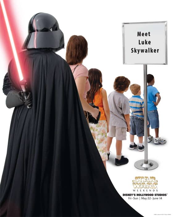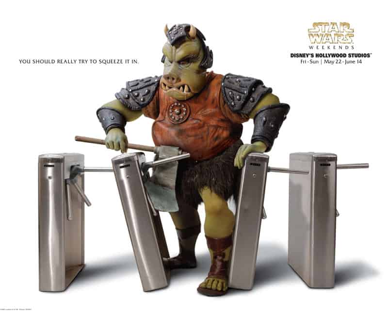 Ewoks, Gamorrean Guards, ein Stormtrooper und Darth Vader sind auf diesen cleveren Plakaten, welche in Backstage-Bereichen der Disney Hollywood Studios in Florida ausgehängt sind…