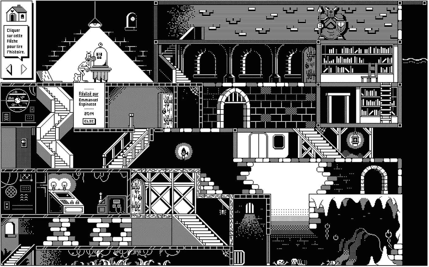 Sehr schöner 1-Bit Webcomic aus animierten GIFs in Schwarz/Weiss von Emmanuel Espinasse.