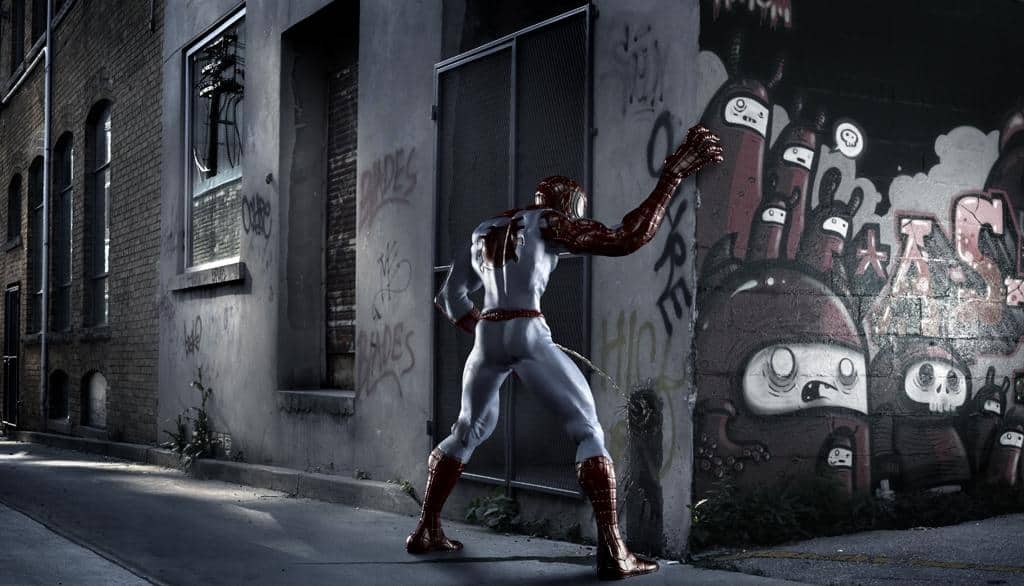 Ian Pool macht amüsante CG-Bilder vom Notdurft verrichtenden Spiderman und Wonderwoman hat auch noch ganz andere Vorzüge…