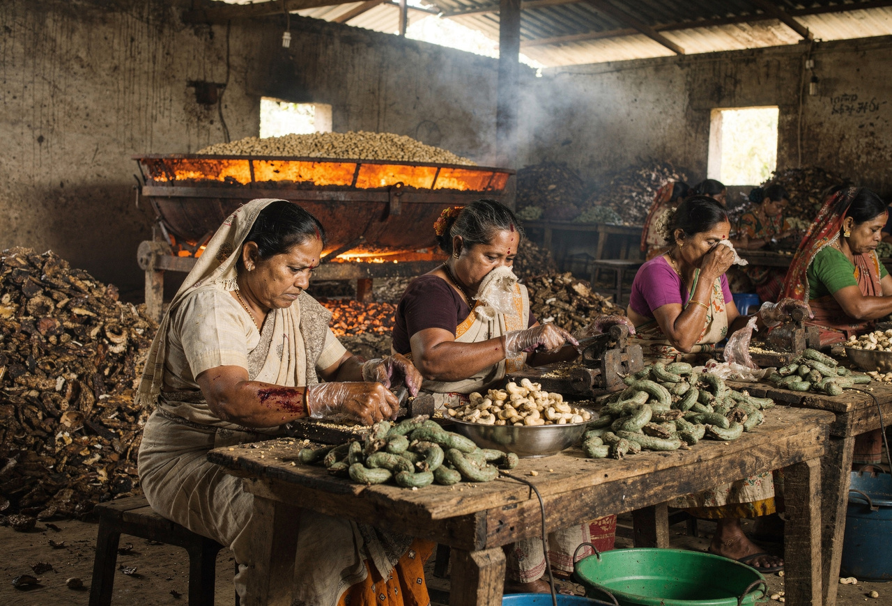 Cashewnüsse wachsen in einer giftigen Schale, die Urushiol enthält – denselben Stoff, der auch in Giftefeu vorkommt. Der Kontakt mit rohen Cashewschalen verursacht schwere Verätzungen und allergische Reaktionen. Die Pflanze schreit förmlich: «Iss das nicht!» Und trotzdem hast du sie gegessen, weil jemand herausgefunden hat, dass man sie gewinnbringend verarbeiten kann. Und so funktioniert es: