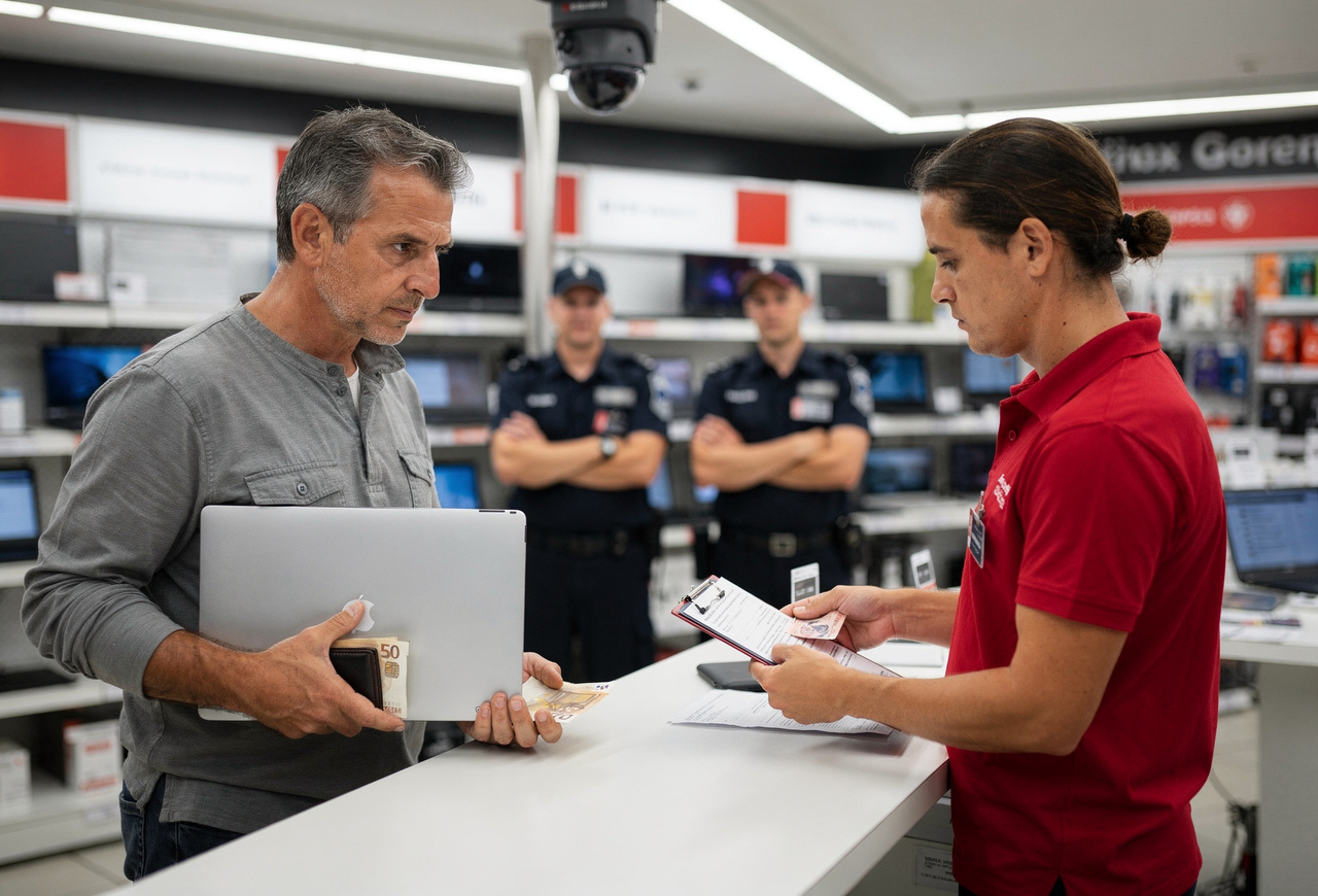 Früher ging man in ein Geschäft, suchte sich ein Gerät aus, legte Geld auf den Tisch und ging wieder nach Hause. Eine erstaunlich simple Transaktion. Heute scheint selbst der Kauf eines Laptops langsam die Atmosphäre einer polizeilichen Aufnahmeprozedur anzunehmen. Ein Leser wollte bei einer Filiale von MediaMarktSaturn ein Notebook kaufen. Preis: Rund 900 Euro. Kein