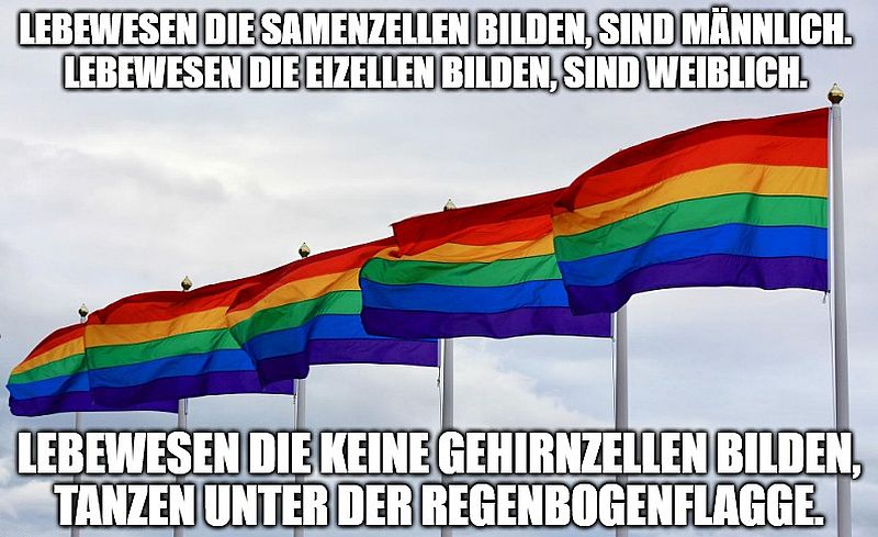 Lebewesen die keine Gehirnzellen bilden, tanzen unter der Regenbogenflagge.