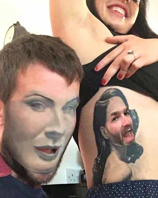 Hier der Snapchat-Gesichtstausch mit den eigenen Tattoos. Der Joker schlägt natürlich alles…