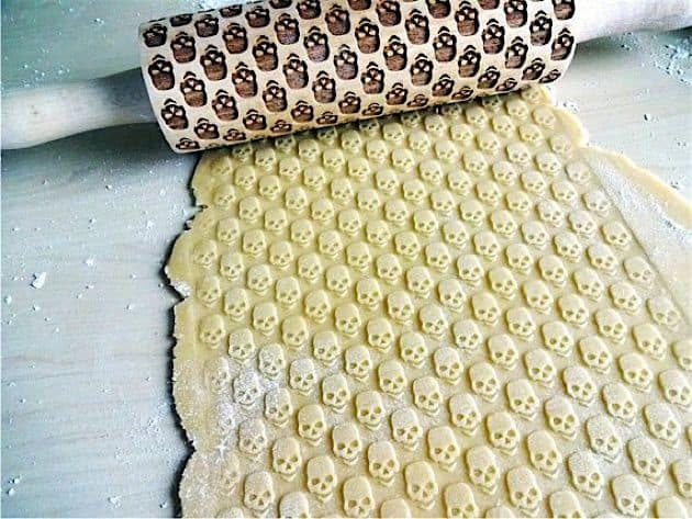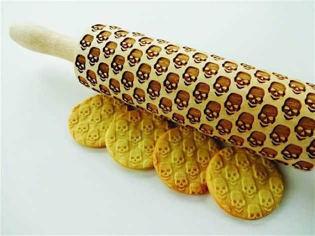 Bekanntlich ist bald Halloween und wie wäre es mit scary Keksen? Dafür braucht man nur einen einfachen Teig und diesen genialen Teigroller, der per Laser mit spooky Totenköpfen oder Piratensujet versehen wurde. Auf Etsy bietet die Lettin Ruta in ihrem Shop noch viele weitere Designs an, Smileys, Schriftzüge oder süsse Pandas machen sich bestimmt auch ganz toll…