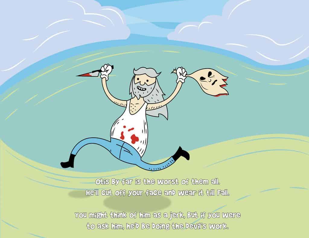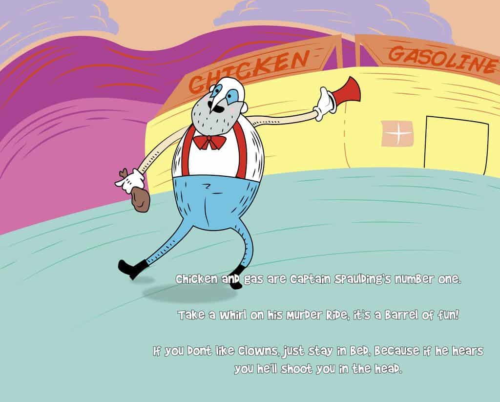 DeviantArt User watsondonald musste als Hausaufgabe von seiner Schule ein Kinderbuch zu erstellen. Und so bediente er sich an «House of 1000 Corpses» und «The Devils Rejects» und fertigte daraus ein 12-seitiges «Kinder»-Buch. Die Texte sind kurz und knackig gehalten und die Zeichnungen spassig und daher gibts nachfolgend ein paar Bilder aus dem Kinderbuch, dass ihr euch komplett hier anschauen könnt.