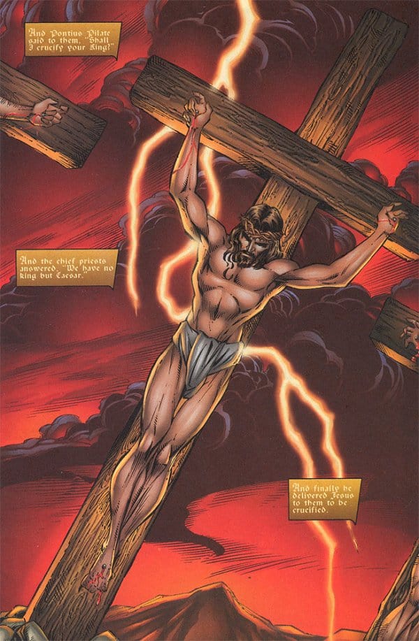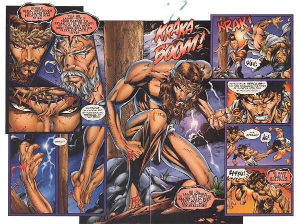 In diesem Comic von Rob Liefeld tritt Jesus als frisch von den Toten auferstandener Zombie Heiland gegen Zeus an. Griechische Mythologie trifft christliche Mythologie. Der ultimativen Clash of the Titans. Hell, yeah!