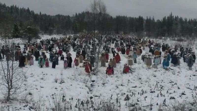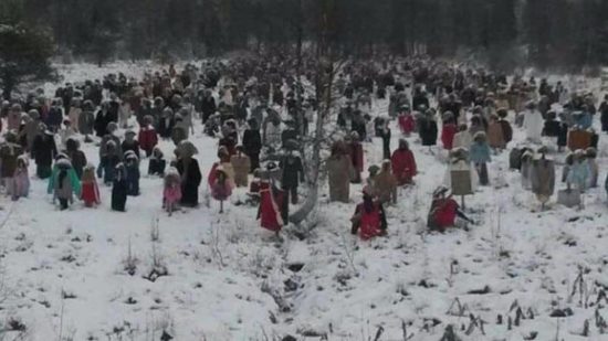 Eine Apokalypse liegt nicht in der Luft, es gibt sogar eine logische Erklärung für das schaurige Bild, das von «Google Street View» aufgenommen wurde. Die Armee der Untoten besteht in Wirklichkeit aus verschiedenen Vogelscheuchen, die alle Teil des Kunstwerks «The Silent People» Nahe der Stadt Suomussalmsind in Finnland sind. Jede Vogelscheuche ist aus Holz hergestellt, mit einem Kopf aus Moostorf.