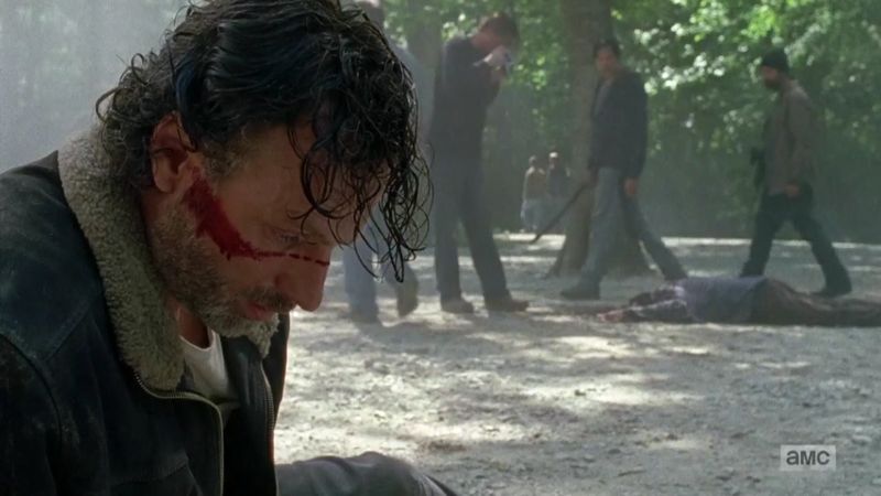 Gemäss «The Talking Dead» spoilerte Moderator Chris Hardwick die Zukunft von Maggie Greene, die nach dem Tod von Glenn nicht mit ihrem eigenen Leben abschliesst. Ganz im Gegenteil, in den Comics verlässt sie Alexandria und wird die neue Anführerin der Hilltop Colony. Bisher gab es noch keine Anzeichen, dass diese Storyline auch in der TV-Serie umgesetzt wird. Doch Lauren Cohans genervter Gesichtsausdruck in «The Talking Dead» sprach Bände. Offensichtlich war sie nicht erfreut darüber, dass die Zukunft ihres Charakters ganz nebenbei einem Millionenpublikum gespoilert wurde. Einen Tag vor der Premiere der 7. Staffel tauchte ein Video im Web auf, das den Tod von Maggie zeigt. Doch was steckt dahinter? AMC hat für jeden Charakter offensichtlich längere Todesszenen gedreht, um einen Leak zu erschweren. Die gezeigten, kurzen Todesszenen aller Charaktere haben für reichlich Verwirrung unter den Fans gesorgt. Hintergrund der Einblendungen: Negan ruft Rick ins Gedächtnis, was passieren könnte, wenn er ihm nicht gehorcht. Rick stellt sich dabei bildlich vor, dass weitere Freunde sterben könnten, wenn er sich Negan widersetzt. Die Szenen verfolgen ihn, als er sich einen Weg zurück zum Wohnwagen bahnt, um die Axt zurückzubringen.