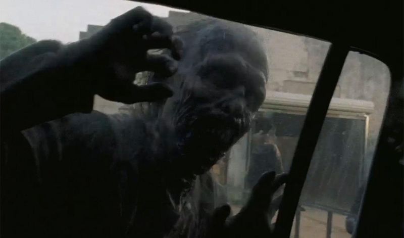 Was das Headquarter von Negan und seinen Gesellen angeht, so bekamen wir im Trailer bereits einen ersten Eindruck des «Sanctuary». Als sie im zweiten Shot des Trailers den Eimer von dem angeketteten Walker in der Nähe des Zaunes entfernen, sehen wir ganz deutlich das Gebiet ausserhalb des Sanctuarys. Fans, die die Comics kennen, werden sicherlich wissen, dass ein Teil der Verteidigung des Sanctuarys darin besteht, dass sie Walker aneinanderketten. Einen weiteren Hinweis auf das Sanctuary bzw. dessen makabre Verteidigungsmassnahmen erhalten wir später, kurz bevor wir sehen können, wie Negan an das Tor von Alexandria klopft. So sehen wir kurz zuvor einen Walker, der offenbar ebenfalls zur Verteidiungslinie des Sanctuary gehört. Man kann das daran erkennen, dass sein Handgelenk festgenagelt wurde und auch ein Holzpfahl durch seine Brust gestossen wurde, was wiederum ein erneutes Zeichen für die Umgebung des Sanctuary darstellt. Das ist der erste Blick auf das mysteriöse Sanctuary: Negans steril-gruseliges Hauptquartier wurde jetzt von den Spoiling Dead Fans zum ersten Mal aus der Vogelperspektive gesichtet.