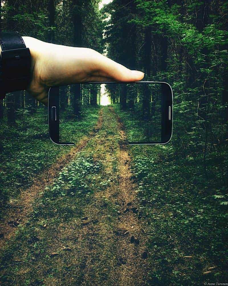 Die meisten nutzen die Handy-Kamera ja doch nur für alberne Selfies und kurzlebige Schnappschüsse. Nicht so der finnische Fotografie- und Grafikdesignstudent Asmo Turunen. In seiner Fotoserie «Through the Phone» zeigt er, dass das Smartphone zu Höherem berufen ist. Dank moderner Bildbearbeitungsprogramme interagiert das Handy auf ganz eigene Weise in der Hand mit der Umgebung. Da braucht es schon einen zweiten Blick, um zu ergründen, was da eigentlich im Bild vor sich geht…