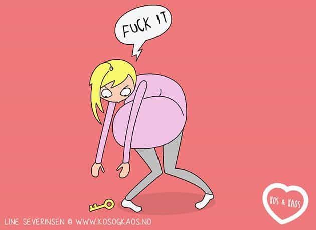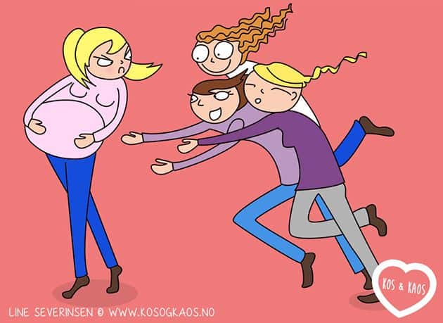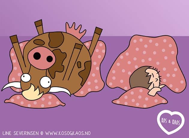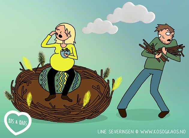 Viele werdende Mütter nutzen die Zeit der Schwangerschaft als kreative Findungsphase. Einige widmen sich handwerklichen Tätigkeiten wie Stricken oder Nähen, andere verpacken ihre Gefühle in Bilder, so wie Line Severinsen aus Bergen. Sie ist Mutter zweier Kinder und fing in der ersten Schwangerschaft mit ihrem Cartoon «Kos & Kaos» an. Hier zeigt sie in witzigen Illustrationen die Ups and Downs der Frauen während der berühmt-berüchtigten neun Monate. Die Schwangerschaft hat Line ja mittlerweile überstanden, deshalb stehen jetzt eher die Probleme des Mutter-Daseins im Visier ihrer Cartoons…
