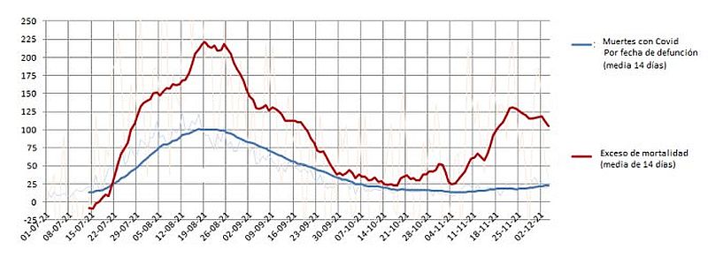 Konkret verzeichnete das MoMo im November 2.994 Todesfälle mehr als erwartet. Im selben Monat lag die Zahl der durch das Coronavirus verursachten Todesfälle nach offiziellen Angaben des Gesundheitsministeriums bei 640. Mit anderen Worten: Der Überschuss an Todesfällen vervierfacht praktisch die Zahl der Todesfälle durch Covid.