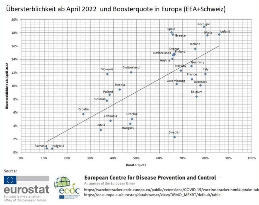Die plötzliche Übersterblichkeit in Europa korreliert mit der Boosterquote. Aber psst, sicher nur Zufall, unsere «Experten* rätseln noch weiterhin… Bitte gehen Sie weiter, meine Damen und Herren, hier gibt es nichts zu sehen…