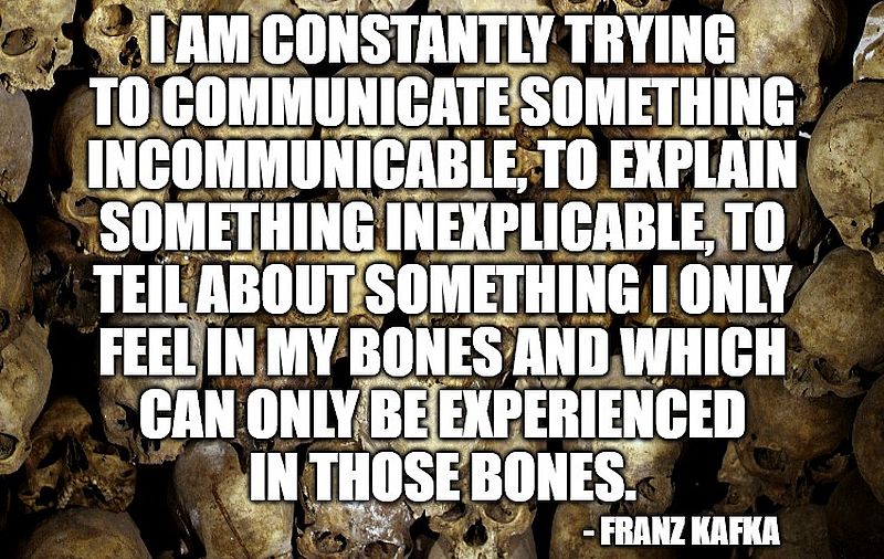 Ich versuche ständig, etwas Unmitteilbares mitzuteilen, etwas Unerklärliches zu erklären, über etwas zu sprechen, das ich nur in meinen Knochen spüre und nur in diesen Knochen erfahren kann.