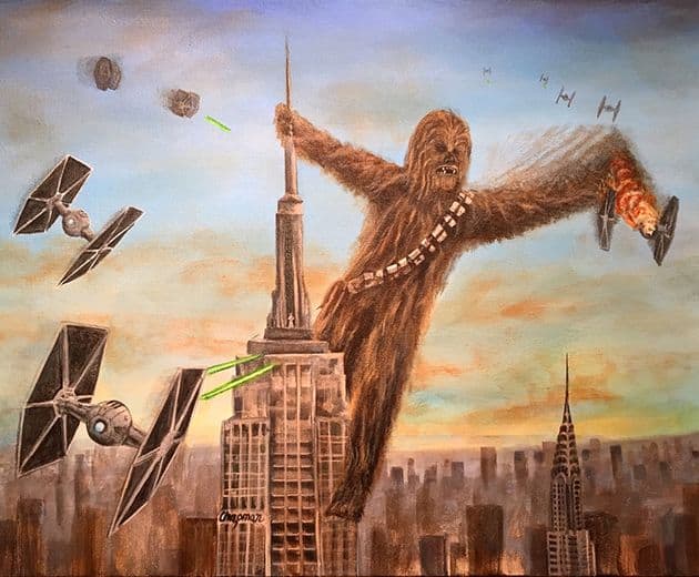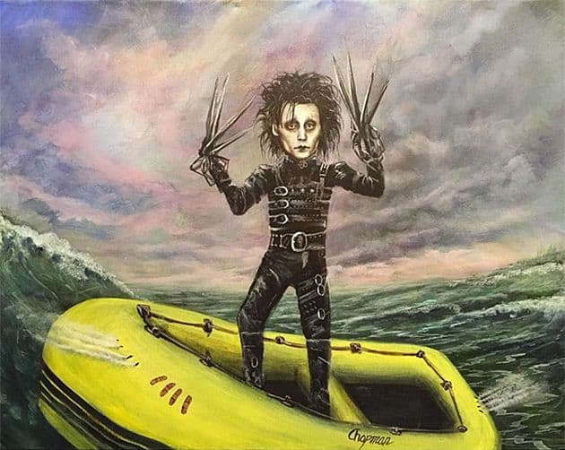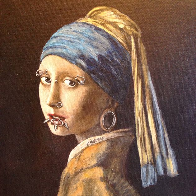 Travis Chapman aus Washington nimmt seine Kunst nicht so ernst wie vielleicht manch anderer Künstler und will uns mit seinen Gemälden vorwiegend unterhalten. Deshalb tauchen auf seinen Bildern auch Chewbacca, Edward mit den Scherenhänden oder ein gesichts-gepierctes Mädchen mit dem Perlenohrring auf. Die Mona Lisa wird zur «Menthol Lisa» und quarzt vor unseren Augen was das Zeugs hält. Falls euch diese witzigen Interpretationen gefallen, können diese bei Etsy bestellt werden.