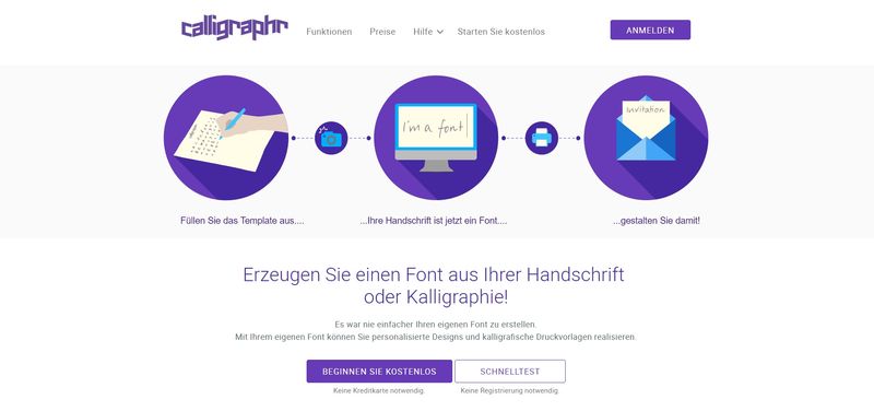 Calligraphr ermöglicht es, die eigene Handschrift in einen Schrift-Font, eine digitale Fassung einer Schriftart, zu verwandeln. Dazu muss man nur ein Formular ausfüllen und schon erhält man eine handgeschriebene Schrift für den Computer oder das Smartphone. Mit deinem eigenen Font kannst du personalisierte Designs und kalligrafische Druckvorlagen realisieren und allem, was dir in den Sinn kommt, einen persönlichen Touch verleihen. Und dies kostenlos bis zu 75 Schriftzeichen die ein Font beinhalten kann. Möchte man mehr Zeichen nutzen, kostet der Service 8 $ pro Monat.