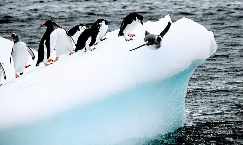 Die grosse Scholle ist bald in so viele Einzelteile geborsten, dass mittlerweile mein Stück das deutlich grösste ist, welches auf diesem Meer treibt. Die Pinguine sind jetzt wieder Menschen. Manche erkennen ihre Situation und mit grossem Anlauf gelingt es dem einen oder anderen, mit einem Sprung auf mein Schollenteil zu wechseln. Wer runterfällt, wird von karmanautischen Mikroorganismen zersetzt und muss im Lebensrad nochmal von weiter unten oder von vorne anfangen, da gibt es viele Optionen, die mich allerdings nichts angehen. Das Schimpfen, Fluchen, Weinen und Schreien dringt herüber. Der Raum und die Zeit spielen keine Rolle mehr. Ruhe und Frieden, Lachen und Musik sind auf meiner Scholle, gleichwohl auch Stille, Ehrfurcht vor der Schöpfung und Respekt. Und von Demokratie und von Toleranz braucht keiner mehr zu sprechen, das geht mit den anderen Unehrlichkeiten im Gebrösel und Geknirsche draussen unter…