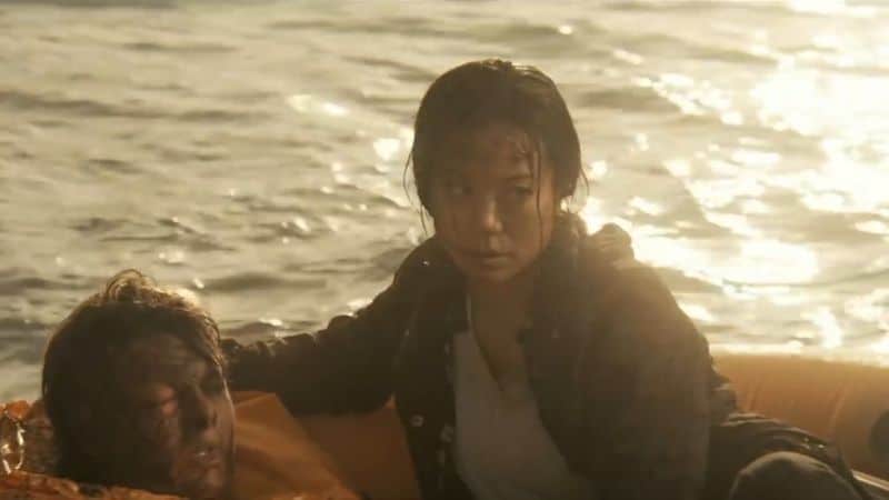 In der 3. Folge erfahren wir, wer aus der Web-Serie «Fear The Walking Dead: Flight 462» überlebt hat! Wie viele Fans schon vermuteten, schaffte es tatsächlich die junge Asiatin namens Charlie lebend aus dem Flugzeug – offenbar gemeinsam mit Drake, der jedoch neben ihr im Rettungsboot alles andere als gesund aussieht. Im Video sehen wir sie auf Daniel zurennen, wobei sie die Gruppe vor den nahenden Walkern warnt, doch offenbar vergebens, denn wenig später sehen wir sie alle im verzweifelten Nahkampf mit den Untoten. Wird sie sich der Gruppe anschliessen? Für die Gruppe wäre Charlie mit ihren Kenntnissen sicherlich ein Gewinn. Alles in allem scheint in «Ouroboros» (ein antikes Symbol mit einer Schlange/einem Drachen, der seinen eigenen Schwanz frisst) jedenfalls ein weiterer Landgang anzustehen, bei dem die Passagiere der Abigail, allen voran Chris, das abgestürzte Flugzeug näher unter die Lupe nehmen. Gegen Ende des Videos sehen wir auch noch Travis in einem Taucheranzug, der unter Wasser offenbar mit einigen Komplikationen zu kämpfen hat, während Madison ihm verzweifelt vom Schiff aus zuruft. Was macht er denn da überhaupt?
