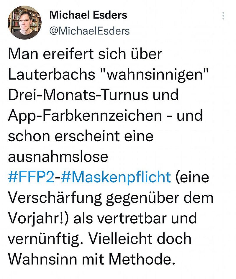 Der Wahnsinn hat definitiv Methode und kann man problemlos nun schon beinahe drei Jahre beobachten, wenn man denn will… wo z.B. die App-Farbkennung hinführen wird, kann man gut in China sehen, wo mittlerweile ein QR-Code-Terror stattfindet. Aber hey, alles kein Problem und immer schön alles in den Arm!