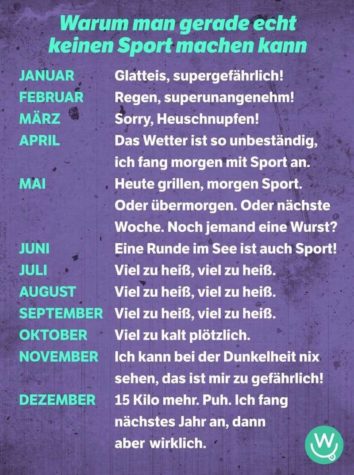 Glücklich ist der, der bereits aufgegeben hat. Diese ganze Aktivität führt ja auch zu nichts, ausser zu Muskelkater und schlechter Laune. Wer bis jetzt noch keine passende Ausrede gefunden hat – bitteschön