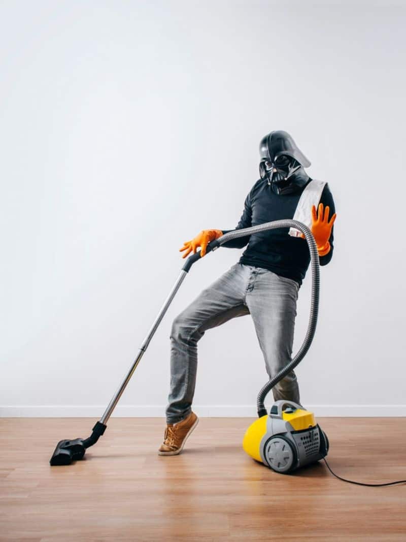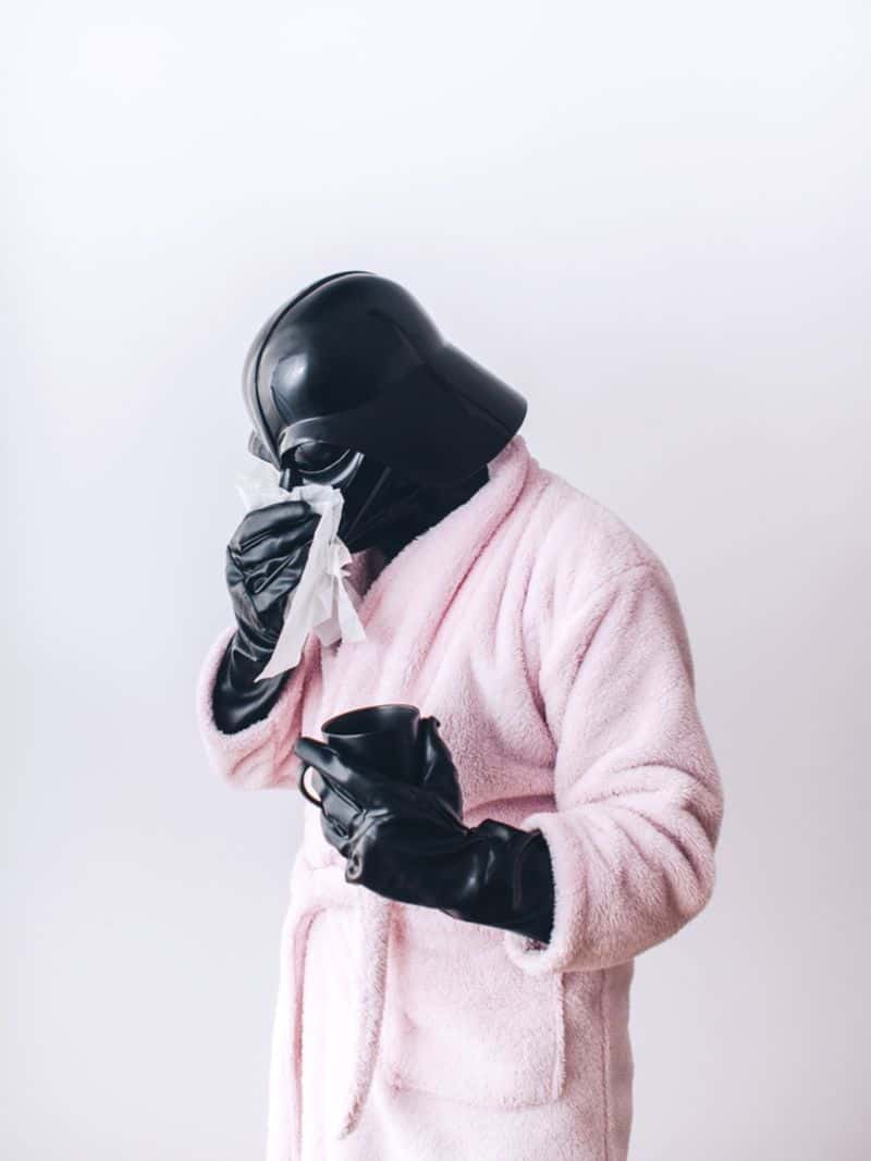 Seit jeher wird Darth Vader immer mit der dunklen Seite der Macht assoziiert. Völliger Schwachsinn. Die nachfolgende Fotoserie beweist, dass der Gute ein ganz normaler Mensch ist. Er geht einkaufen, steht in der Küche, geht joggen und entspannt auch mal mit einem guten Buch auf der Couch. Und wenn er sich mal gar nicht gut fühlt, zieht er sich einfach seinen rosa Bademantel über. Auch schon früher haben wir immer wieder gefragt: «Was macht eigentlich Darth Vader?» So haben wir ihn schon auf einem Einrad Dudelsack spielend, bei in den Güldenen Bögen, auf der Strasse, beim Laden seines Laserschwerts, beim Spielen, beim «Gedankensammeln«, im Wasser, bei einem Banküberfall und beim Säbelrasseln gesehen…