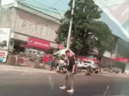 Es gibt kein schlechtes Wetter, es gibt nur falsche Klamotten. Neben den falschen Klamotten kommen jetzt bei den aktuellen Temperaturen auch schlechte Strassen hinzu. Keine Ahnung, wie heiss es dafür sein muss, aber dieser Typ bleibt mit den Schuhen einfach am Asphalt kleben…