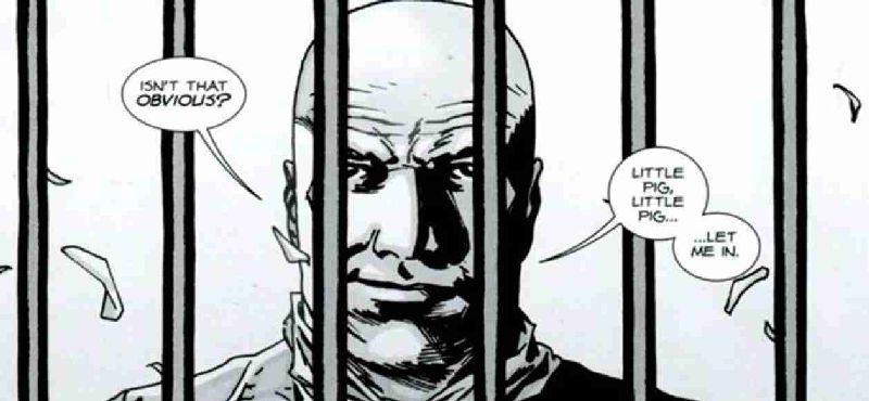 Könnte die Tatsache, dass sie dort «in Schwierigkeiten geraten», also ein Hinweis darauf sein, dass die Wölfe auf ihre Anwesenheit aufmerksam werden und sie bis vor die Tore der Alexandria Schutzzone verfolgen? Einige vermuteten bereits, dass diese letzte Folge mit jener markanten Szene aus den Comics enden könnte, wo Derek, ein ehemaliger Bewohner der ASZ, jetzt Anführer der Scavengers, vor den Toren der ASZ steht und zu Rick auf der anderen Seite des Zaunes sagt: «Kleines Schwein, kleines Schwein, lass mich herein!», was schön an das Märchen vom Bösen Wolf und den drei kleinen Schweinchen angelehnt ist. In den Comics kommt es daraufhin zu einem Schusswechsel zwischen den Scavengers und Ricks Gruppe – doch scheint uns diese Schlacht angesichts der Aussage der TSDF, dass wir in Folge 16 erst «ein paar» der Wölfe zu sehen bekommen würden, eher unwahrscheinlich. Vielleicht erwartet uns hier ja auch der Cliffhanger?