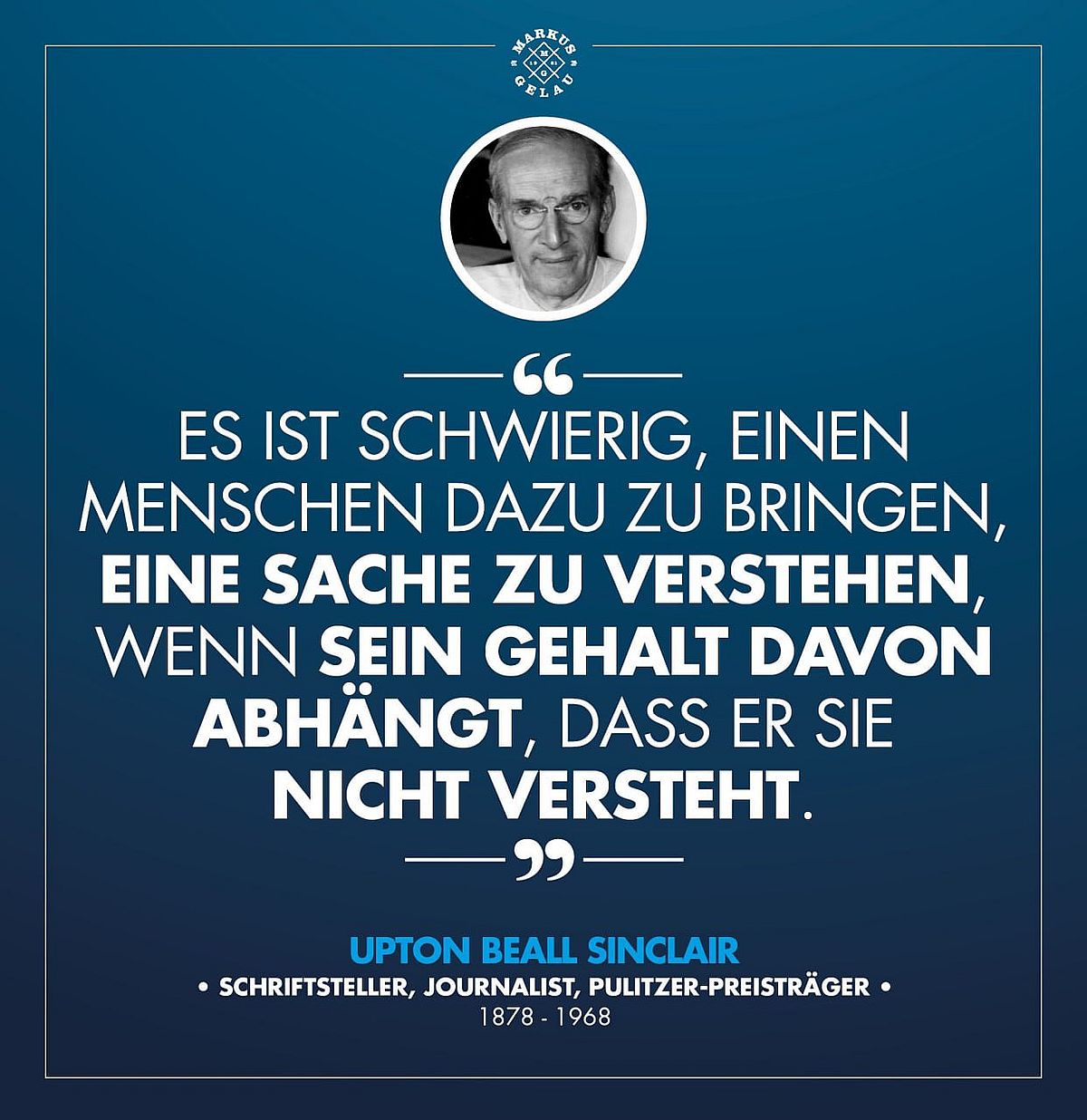 Es ist schwierig, einen Menschen dazu zu bringen, eine Sache zu verstehen, wenn sein Gehalt davon abhängt, dass er sie nicht versteht.