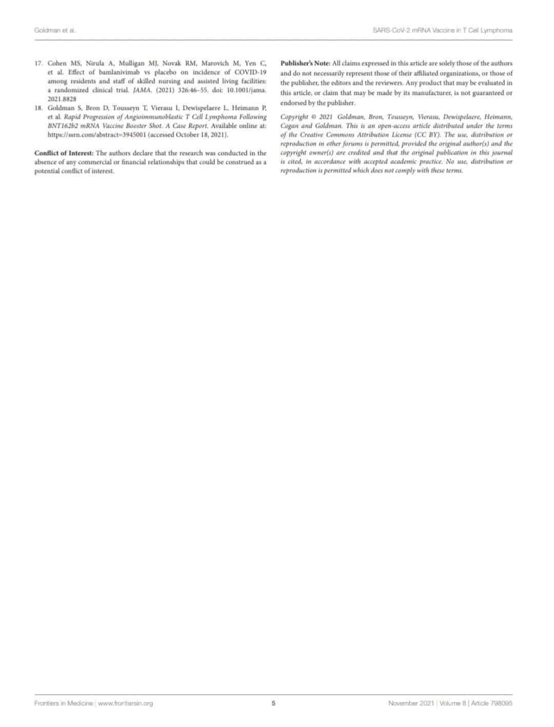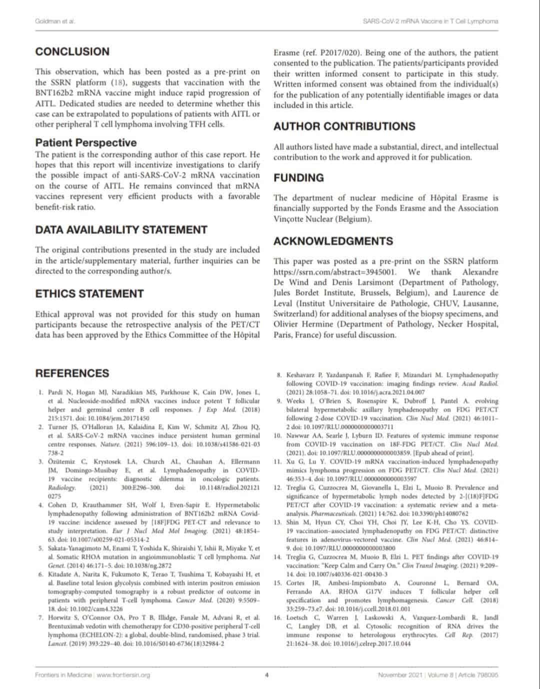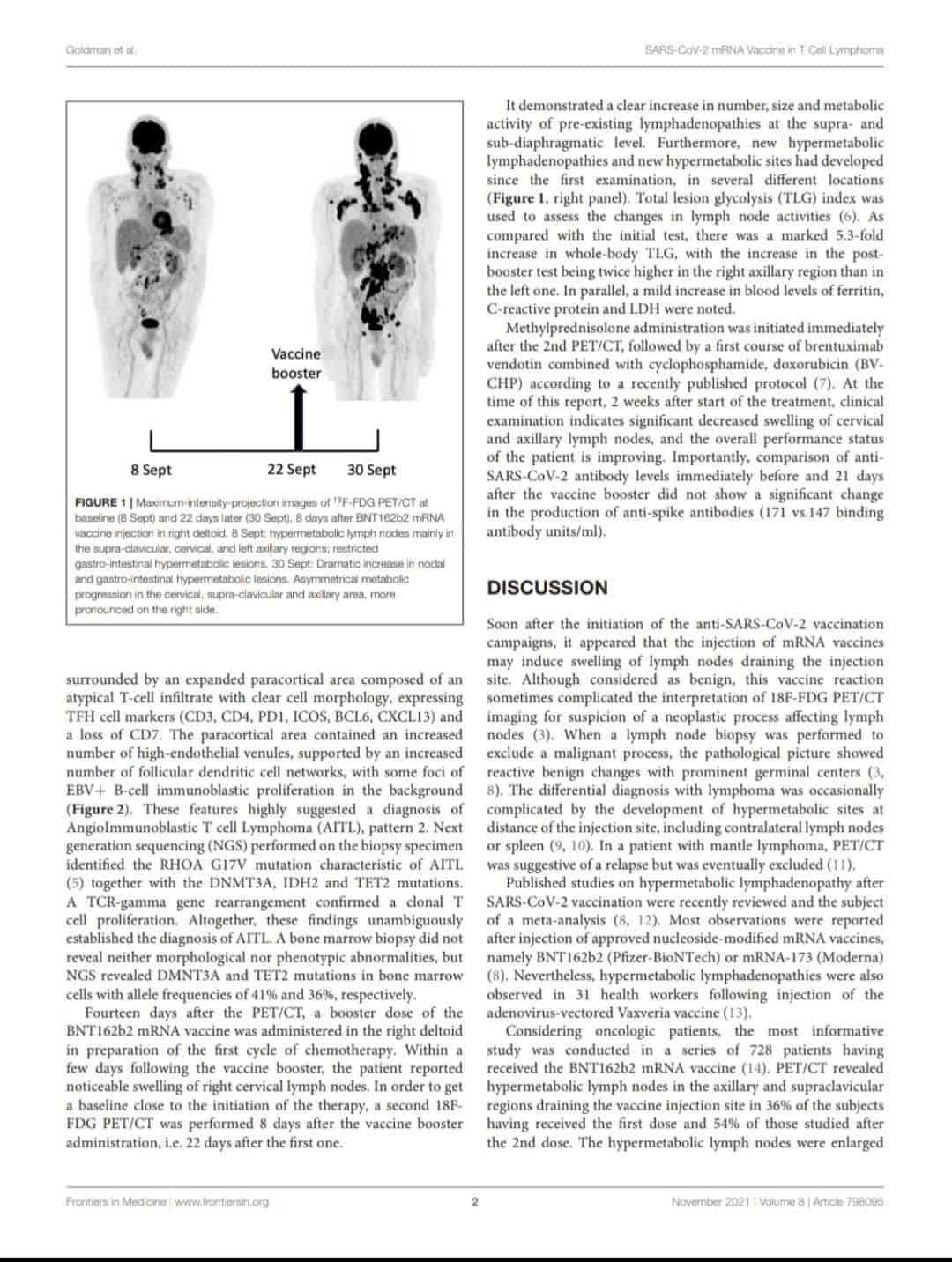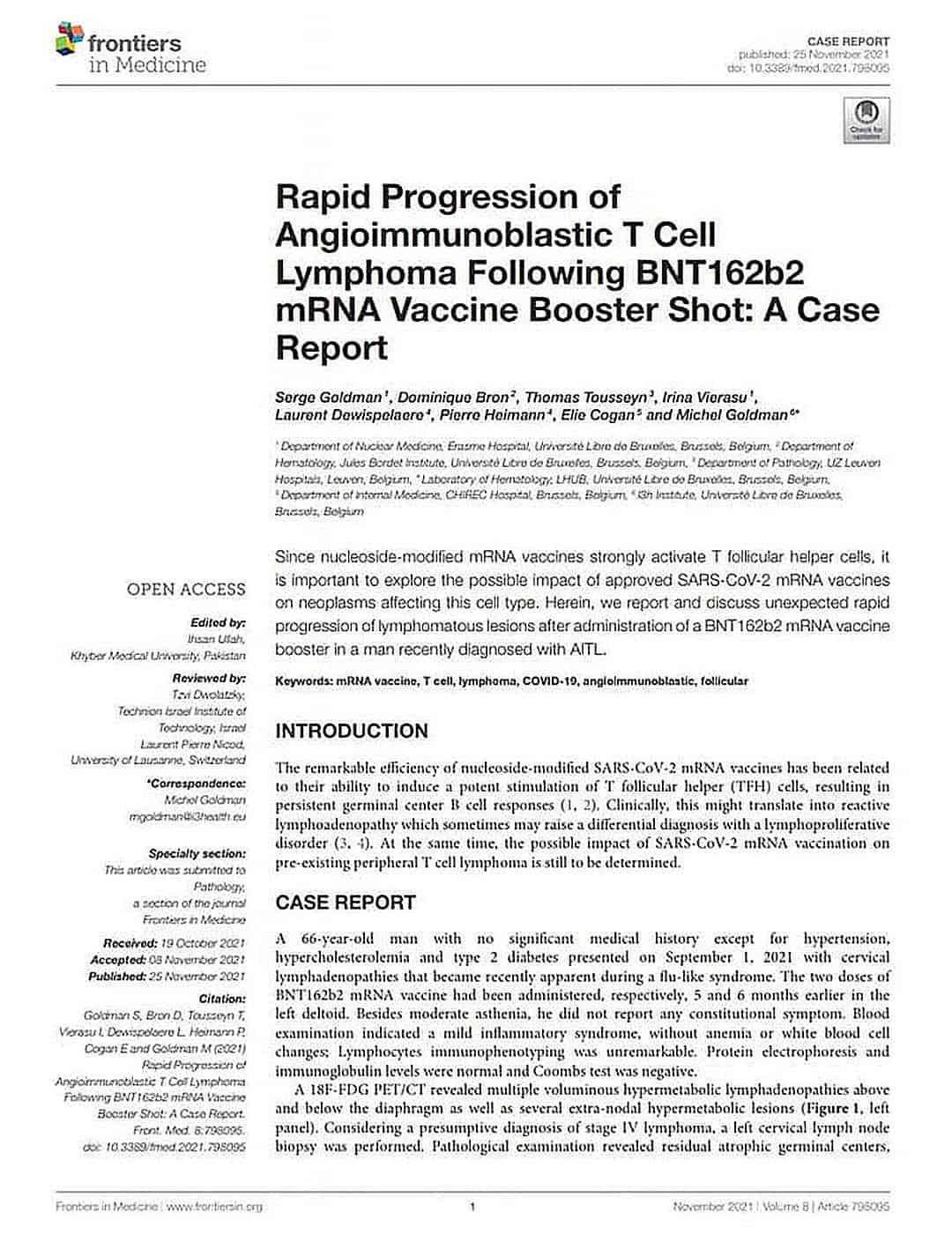 Rasches Fortschreiten des angioimmunoblastischen T-Zell-Lymphoms nach BNT162b2-mRNA-Impfstoff-Booster. Ein Fallbericht in der National Library of Medicine nachzulesen: