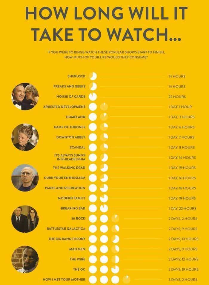Hier eine wunderbare Auflistung für alle, die ganz dringend übers Wochenende ihre Serienlücken füllen wollen… ok, es fehlen einige wichtige wie Sons of Anarchy oder Star Trek, abr trotzdem…