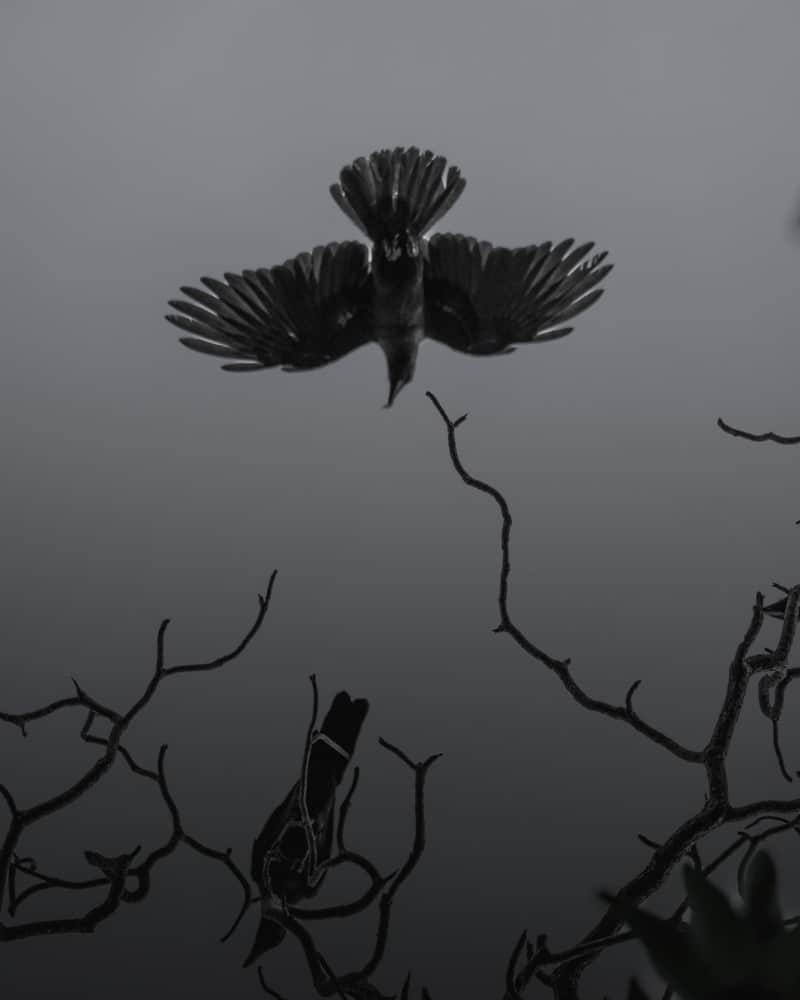 Seit dieser Zeit sieht man, dass alle Raben so schwarz sind wie ein Schatten in einer sternlosen Nacht. Sehr selten geschieht es, dass jemand einen Blick auf einen weissen Raben erhascht; und wenn Ihr jemals das Glück haben solltet, einen zu sehen, dann wisst ihr, dass ihr weitab vom Weg gewandert seid und zurück in das Land der Erinnerung, bevor die Raben schwarz wurden.