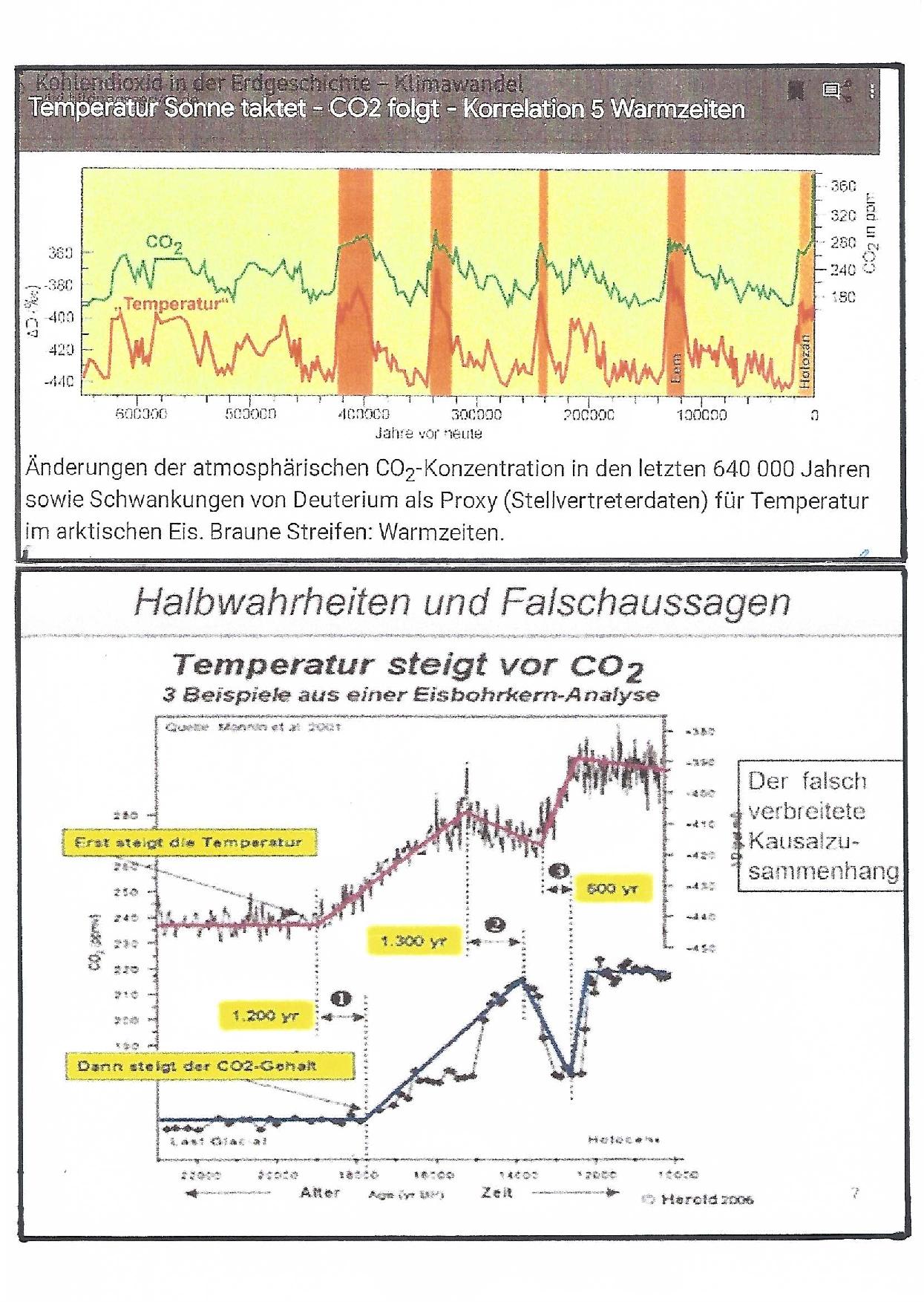 Wer sich mal ein paar grundlegende Gedanken macht, wie echter Klimawandel, nämlich der Wechsel zwischen Warm- und Eiszeit geht, welche vor 11’000 Jahren endete, der versteht sofort, dass dieser rhythmische Wechsel, etwa alle 100’000 Jahre, nicht CO2 bedingt sein kann. Dieser echte Klimawandel, der mit einer Temperatur-Erhöhung von mindestens 12° Celsius einher ging und die Gletscher vom Mittelland in die Bergtäler zurückdrängte, ist von den Bahnparametern der Erde um die Sonne und nicht vom CO2 abhängig (Milankovichzyklen).