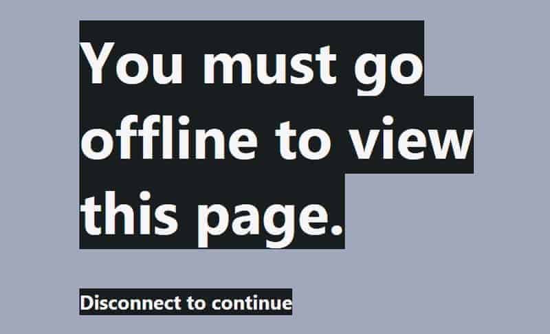 Ganz grossartige Idee von Chris Bolin: Offline Only – und so wahr! Realisiert mit ganz gemein obfuskiertem Javascript…