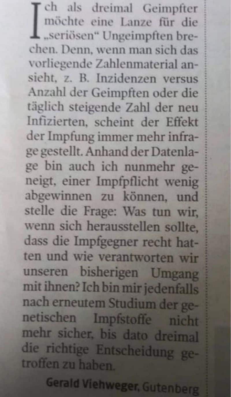 Jetzt stellt sich nur noch eine Frage: Ist das von einem seriös oder unseriös Geimpften verfasst? ;)