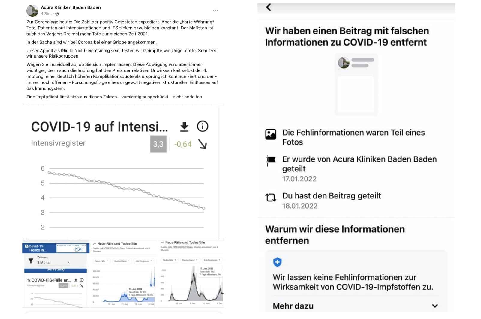 Die ACURA-Kliniken Baden Baden (also eine ziemlich grosse Institution, die durchaus weiss, wovon sie spricht und nicht einfach als Schwurbler hingestellt werden kann) haben vor nicht so langer Zeit einen verdammt lesenswerten Post auf Facebook kommuniziert. Dieser beinhaltet eine professionelle Einschätzung zur Datenlage von Covid-Patienten, untermauert von unbestreitbaren Zahlen, aufgrund derer die Klinik mit über 250 Mitarbeitern den Sinn einer Covid-Impfpflicht in Frage stellt. Doch lest ihn bitte einfach selbst, wir haben diesen für euch gesichert, denn nur kurze Zeit später nach der Veröffentlichung zensierte Facebook den Post…