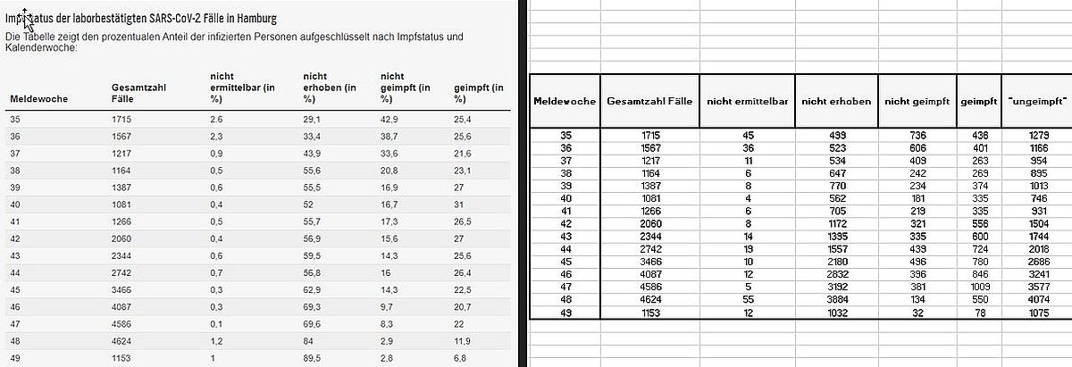 Schöne Darstellung, wie aus Datenschrott die „Pandemie der Ungeimpften“ geframt wurde. Hier bebildert, was Hamburg und alle anderen Bundesländer machten. Hebt es euch auf und verteilt es, denn es war eine mediale Hetzkampagne, die durch absichtliche Umdefinition «Die Ungeimpften» zu den Schuldigen der Pandemie erklärte.