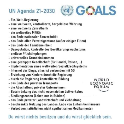 Die Demokratie sicht schon seit Jahren vor sich hin und ist vor zwei Jahren gestorben. Das Ziel der UN Agenda 2030 ist offensichtlich nicht, sie wiederherzustellen. Der geplante Totalitarismus funktioniert nur mit Zwang…